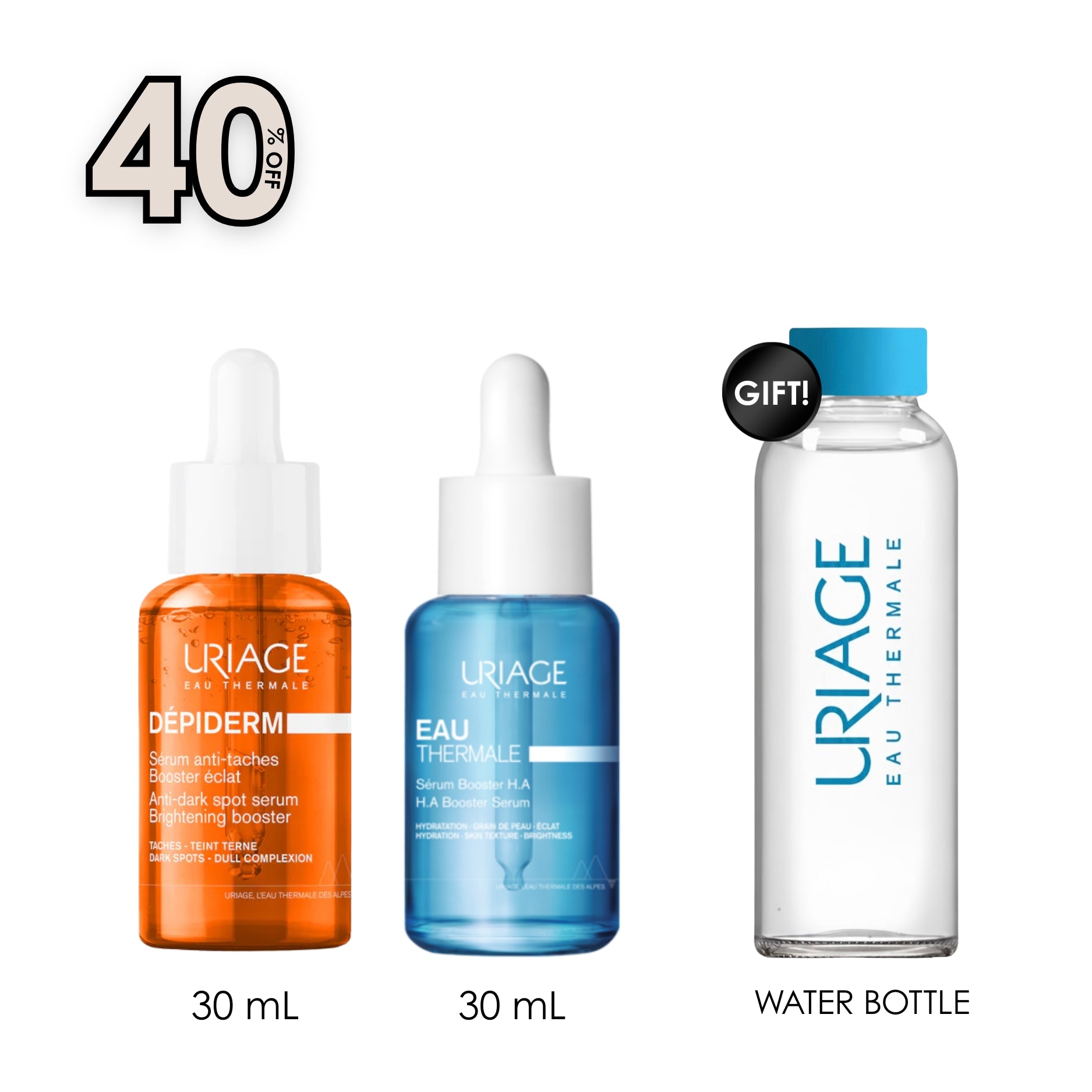 Dépiderm Anti-Dark Spot Serum Brightening Booster 30 ML + Eau Thermale H.A. Booster Serum + Free Stay Hydrated with this Chic Water Bottle