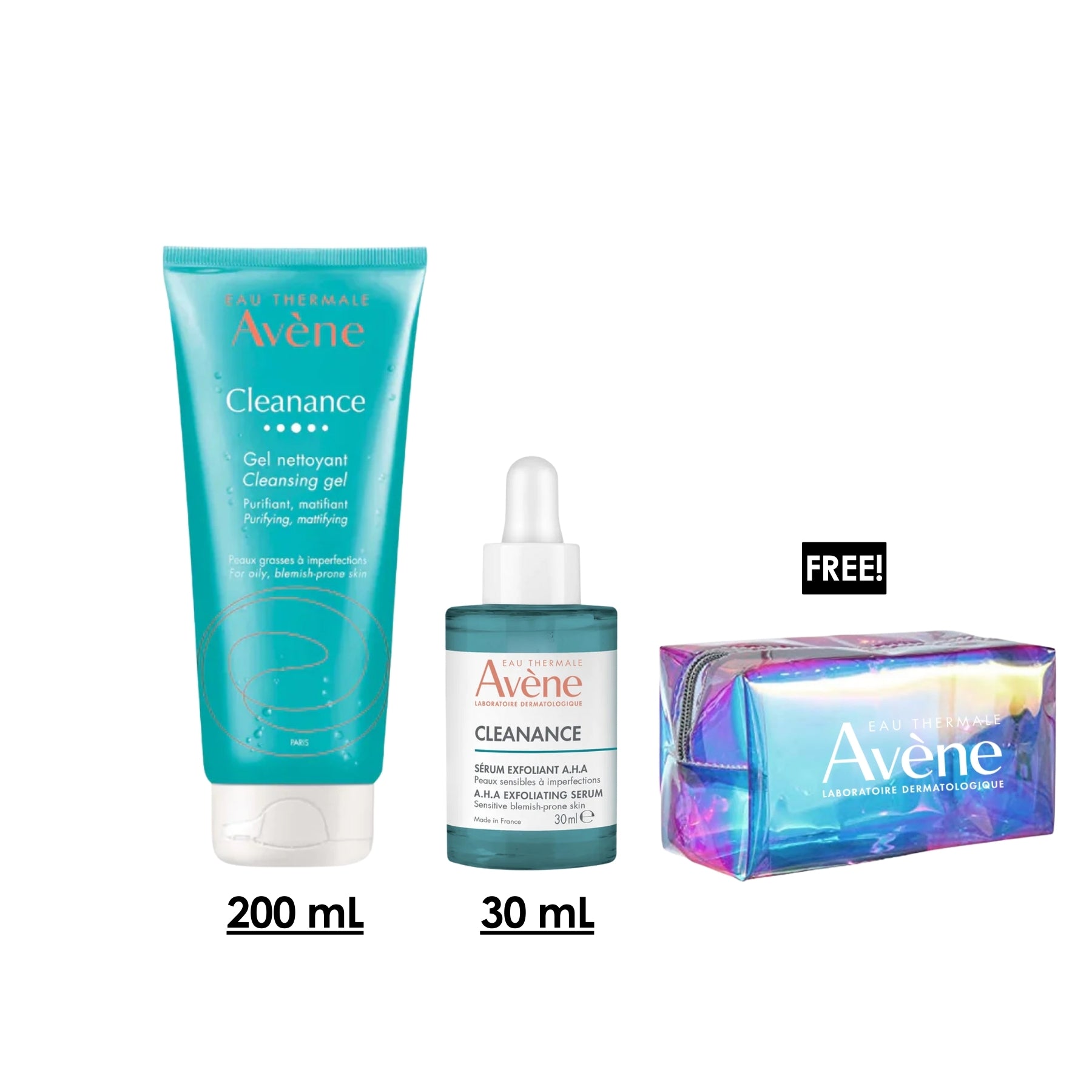 Cleanance Acne Cleanser Gel For Oily Skin 200 ML + Cleanance Exfoliating AHA Serum + Free Pouch