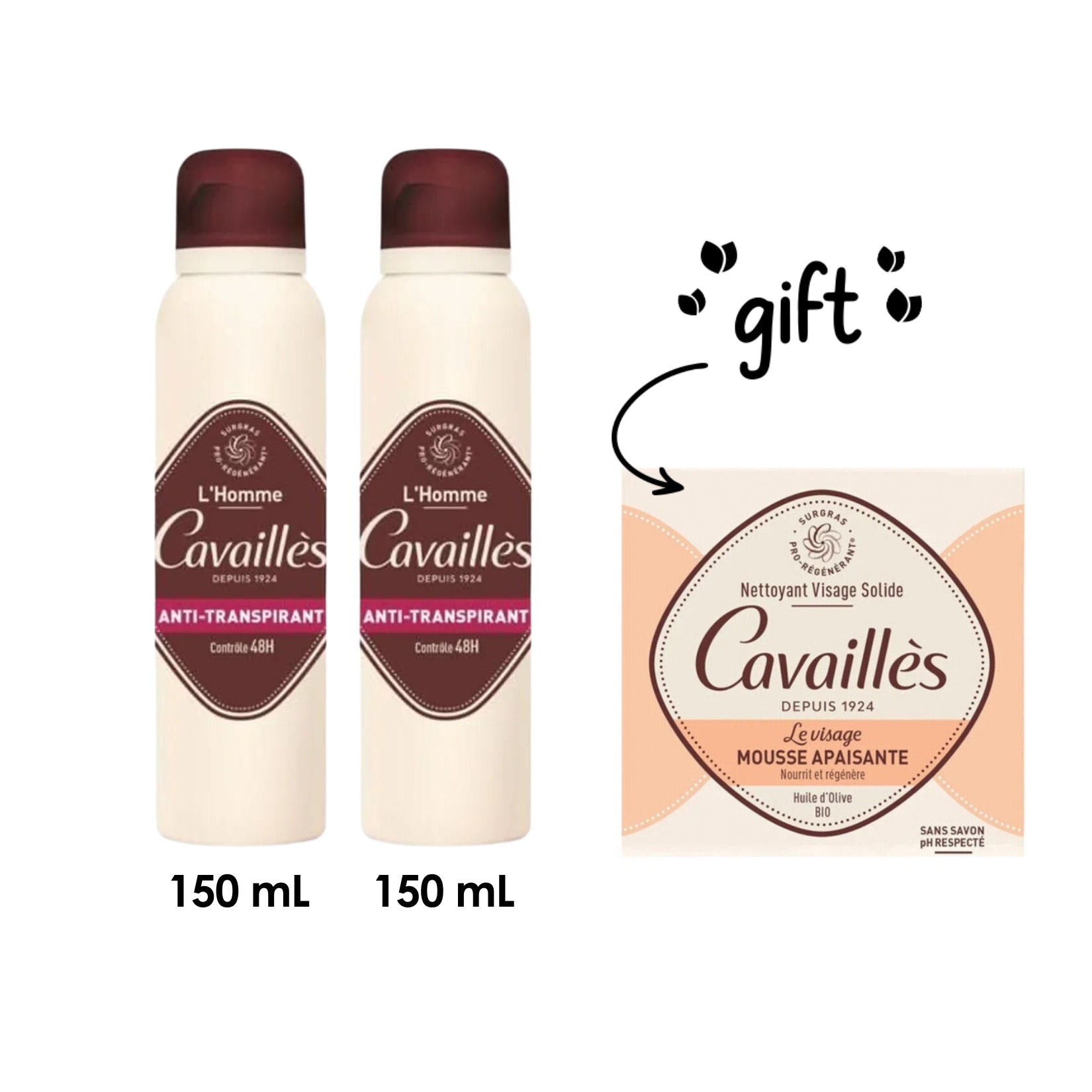 2 x L’Homme Deodorant 48h Freshness Spray + Free Solid Face Wash - Soothing Foam
